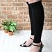 <はき口:21hpa 足首:35hpa>足首までの着圧ふくらはぎサポーター。足首から上を集中的に引き締め、サポートします。足首までなので、パンツにパンプスやサンダルというスタイルにも対応できます。また、普通の着圧ソックスだとつま先に負担がかかるという方にもお勧めです。夏に最適な適度な光沢と滑り感があり、洗濯にもまけない丈夫な素材です。